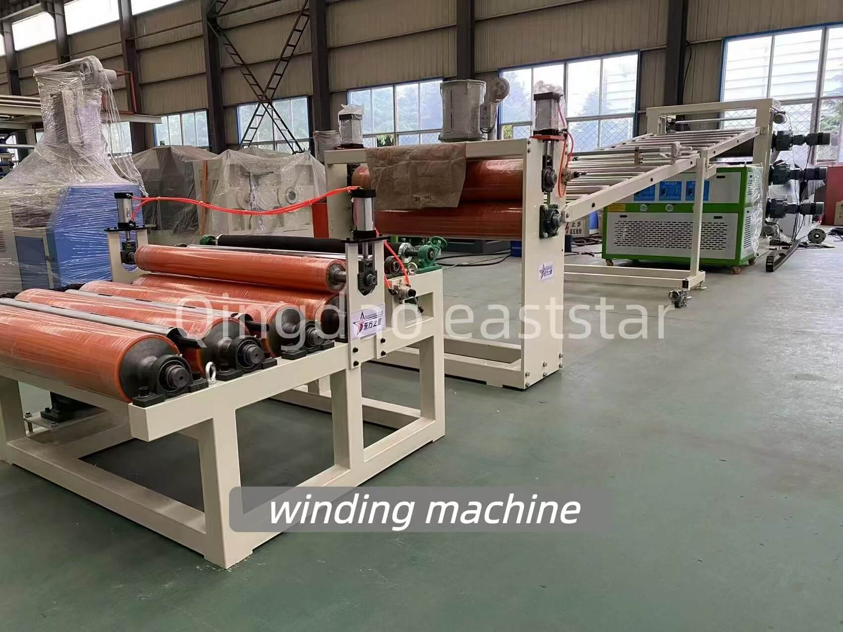 Kabuuang lakas ng pag -initAng linya ng produksiyon na ito ay nilagyan ng isang katumpakan na natutunaw na metering pump at isang espesyal na dinisenyo coat na hanger-style na T-Die. Ang die flow channel ay chrome-plated at salamin-makintab upang matiyak ang pantay na pamamahagi ng matunaw at pare-pareho ang kapal ng sheet. Ang bumubuo ng mga roller ay katumpakan ng lupa at chrome-plated, na nagreresulta sa isang pambihirang makinis na ibabaw at tinitiyak ang isang makinis at patag na sheet sheet.