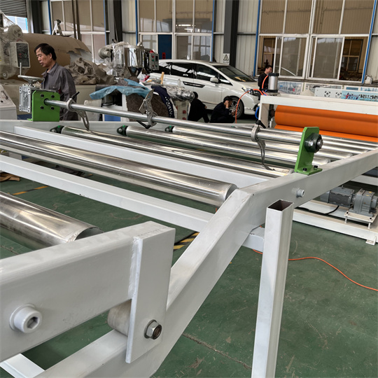 PVC Anti-Static Board EquipmentT: Ang kagamitan ay pangunahing binubuo ng isang 120 solong screw extruder, isang three-roller calender, isang paglamig bracket, isang goma roller traction machine, isang shearing machine, at