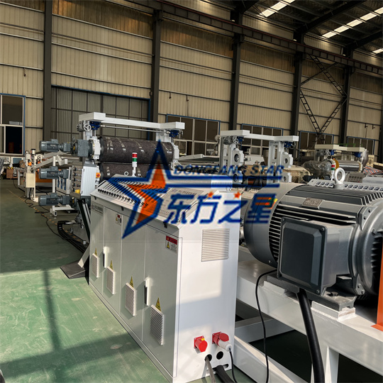 Ang malambot na PVC Sheet Extruder Machine Turtle Pattern Machine ay tinatawag ding PVC Livestock Board Equipment. Pangunahing ginagamit ito para sa pagtula ng lupa ng baboy, baka at tupa. Ito ay gumaganap ng isang papel ng pangangalaga ng init at kapaki -pakinabang sa paggawa ng hayop. Ang PVC Tortoise Board Equipment ay binubuo ng: extruder, plate mold, three-roll calender, paglamig bracket, traction machine, cutting machine, conveying bracket, oras-oras na output 350-400kg/h, PVC Tortoise Board Specifications: Lapad 1000mm, Kapal 6mm. Ang lapad at kapal ng produkto ay nababagay, at ang kagamitan ay maaaring mag -order ayon sa mga kinakailangan sa customer. Ang kagamitan sa PVC Tortoise Board ay maaari ring makagawa ng orange na mga produkto ng pattern ng alisan ng balat at brilyante sa pamamagitan ng pagpapalit ng gitnang roller.